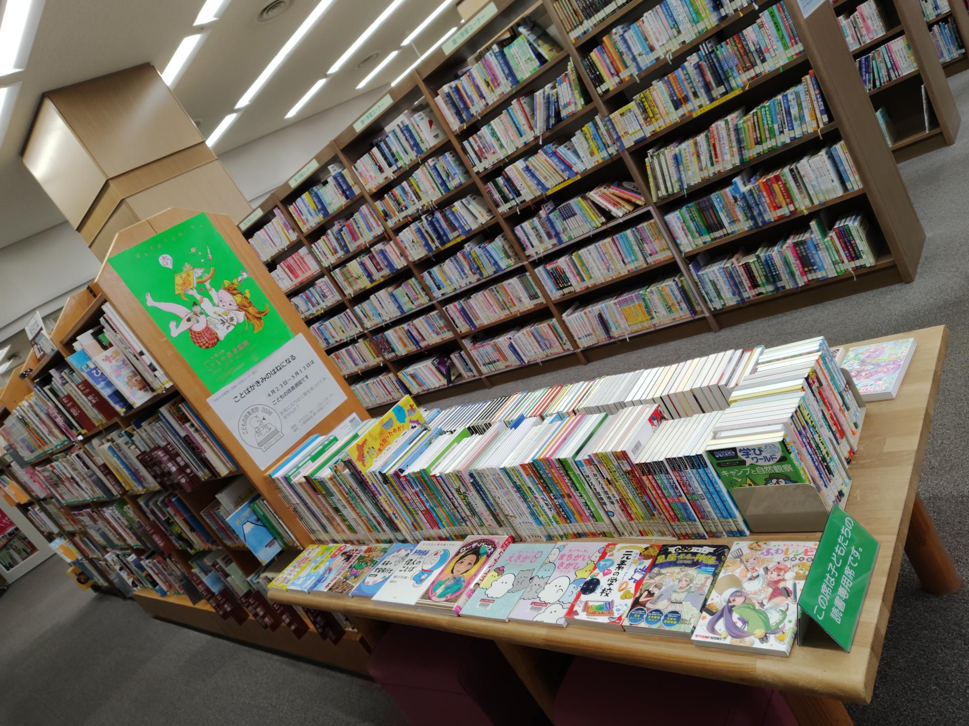 4月23日~5月12日のこどもの読書週間に合わせて、児童書を中心におすすめの本の展示・貸し出しをします。