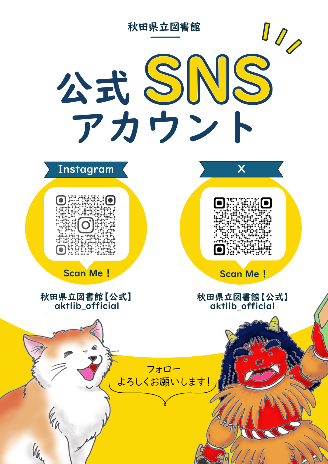 秋田県立図書館では、新しくInstagramとX(旧Twitter)のアカウントを開設しました。